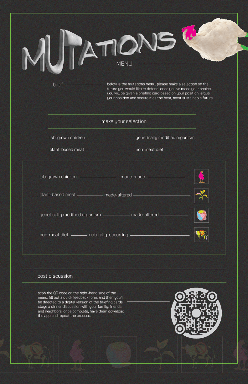 This project looks closely at mutation in the context of food. how do we see genetically modified organisms versus lab-cultured meat? are they the same or different?
